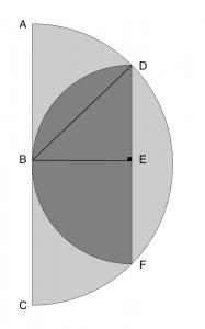 The lines BE and DE are both radiuses of the small semi-circle. The line BD is a radius of the larger semi-circle. From Pythagoras we can see that it is √2 times as long as the the radius of the small semi-circle.
